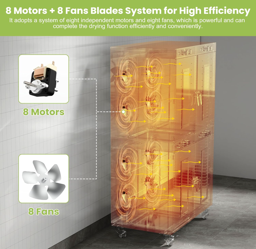 4 independent control cabinets, you can dehydrate different food.