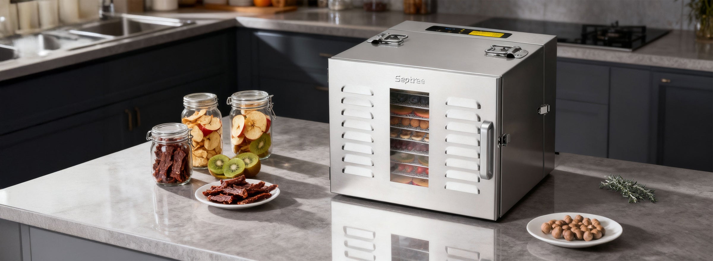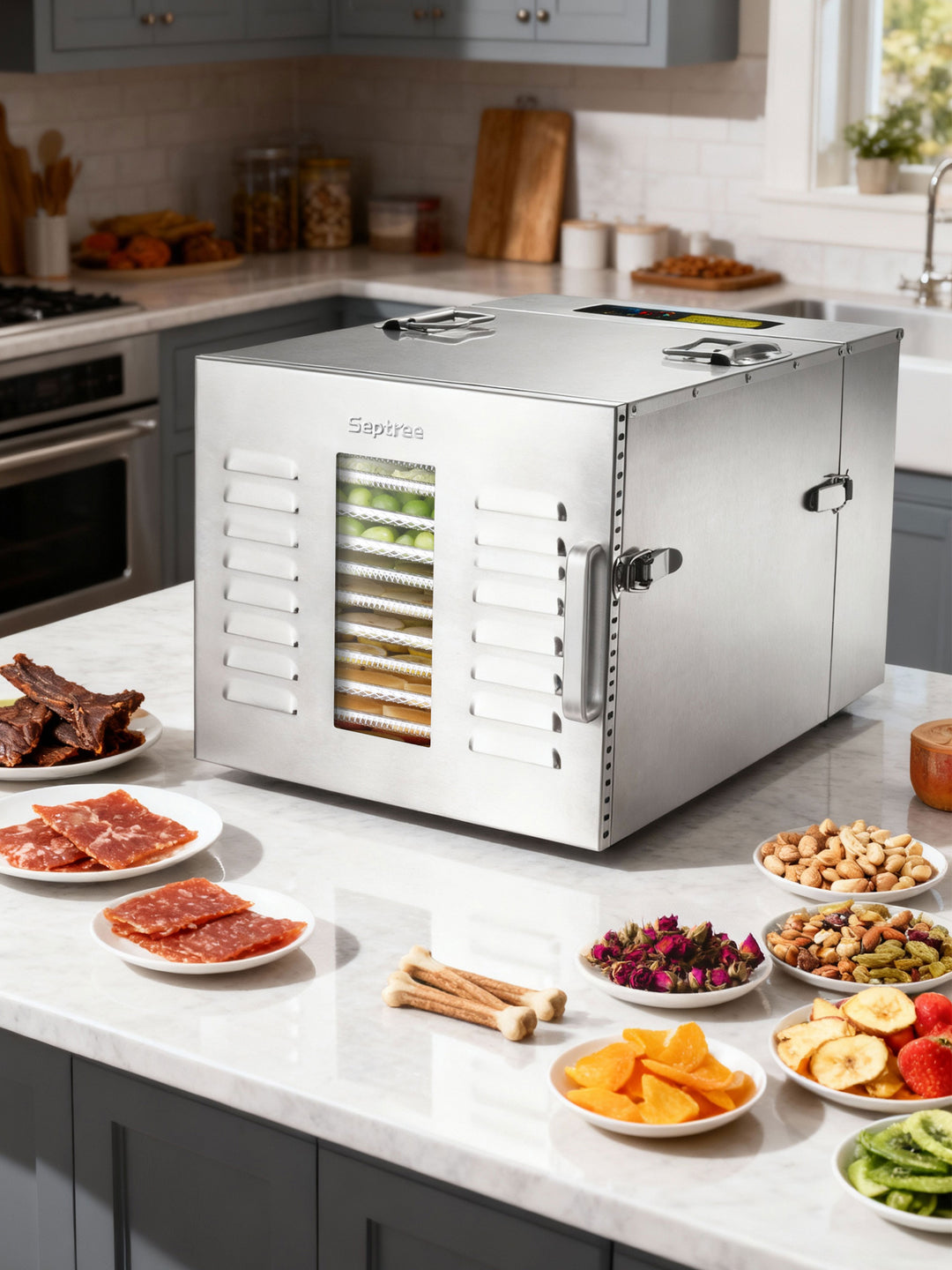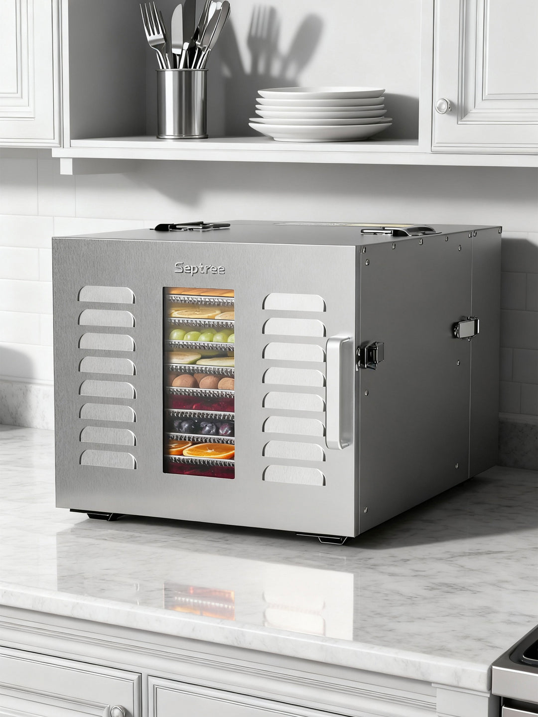 Whether you're making dried fruit, cooking beef jerky, or preservingherbs, the possibilities are endless, and the cleanup is easy withdishwasher-safe drying trays.