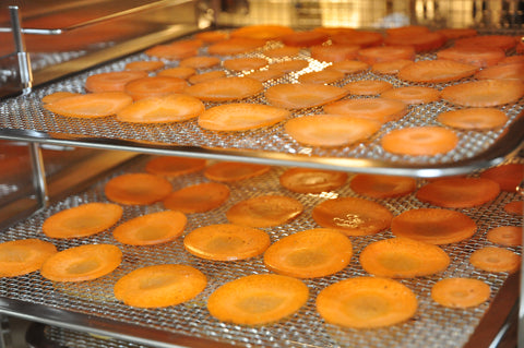 Coloca las rodajas en las bandejas de secado en una sola capa sin superponerlas. Seque hasta que esté crujiente, de 135° a 145°F durante 4 a 6 horas. Las zanahorias crudas tardarán más en secarse que las blanqueadas.